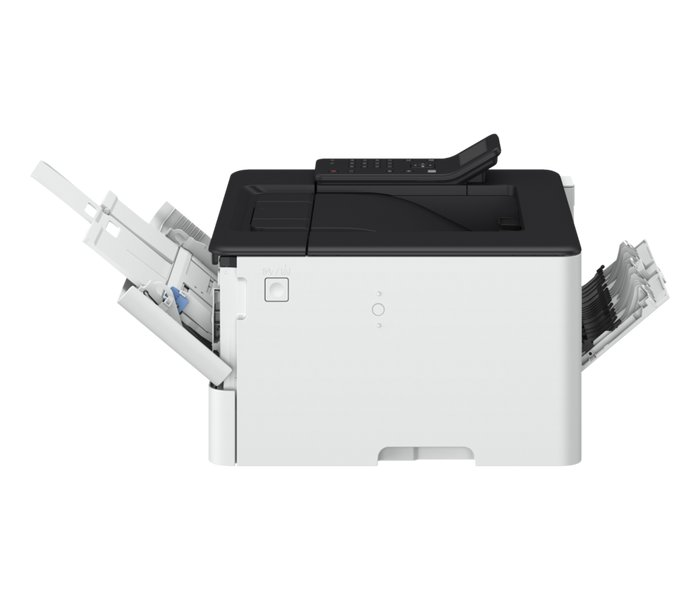 Standardní vybavení zahrnuje zásobník na 250 listů a víceúčelovou přihrádku s kapacitou 100 listů. Volitelný zásobník rozšiřuje kapacitu na celkem 900 listů (není součástí). Tiskárna zpracovává papíry o gramáži 60 až 199 g/m² včetně obálek, štítků a pohlednic.