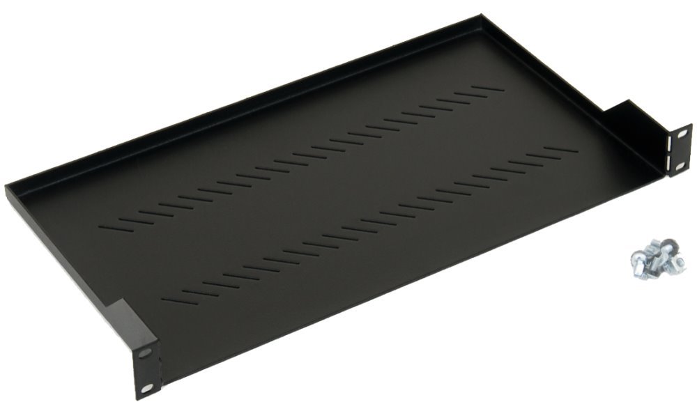 Police s perforací 1U. Maximální nosnost police je 20 kg.