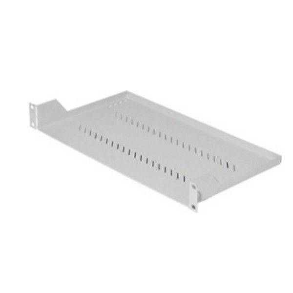 Police s perforací 1U. Maximální nosnost police je 15 kg.